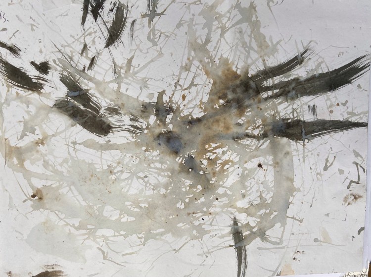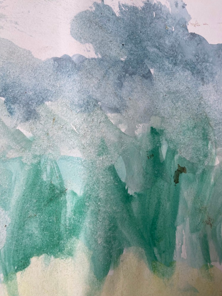 Shapes of stone. Mixed media on paper. 21×32 cm. 2022.Shapes of sea. Watercolours washed in the sea. 21×32 cm. 2022.